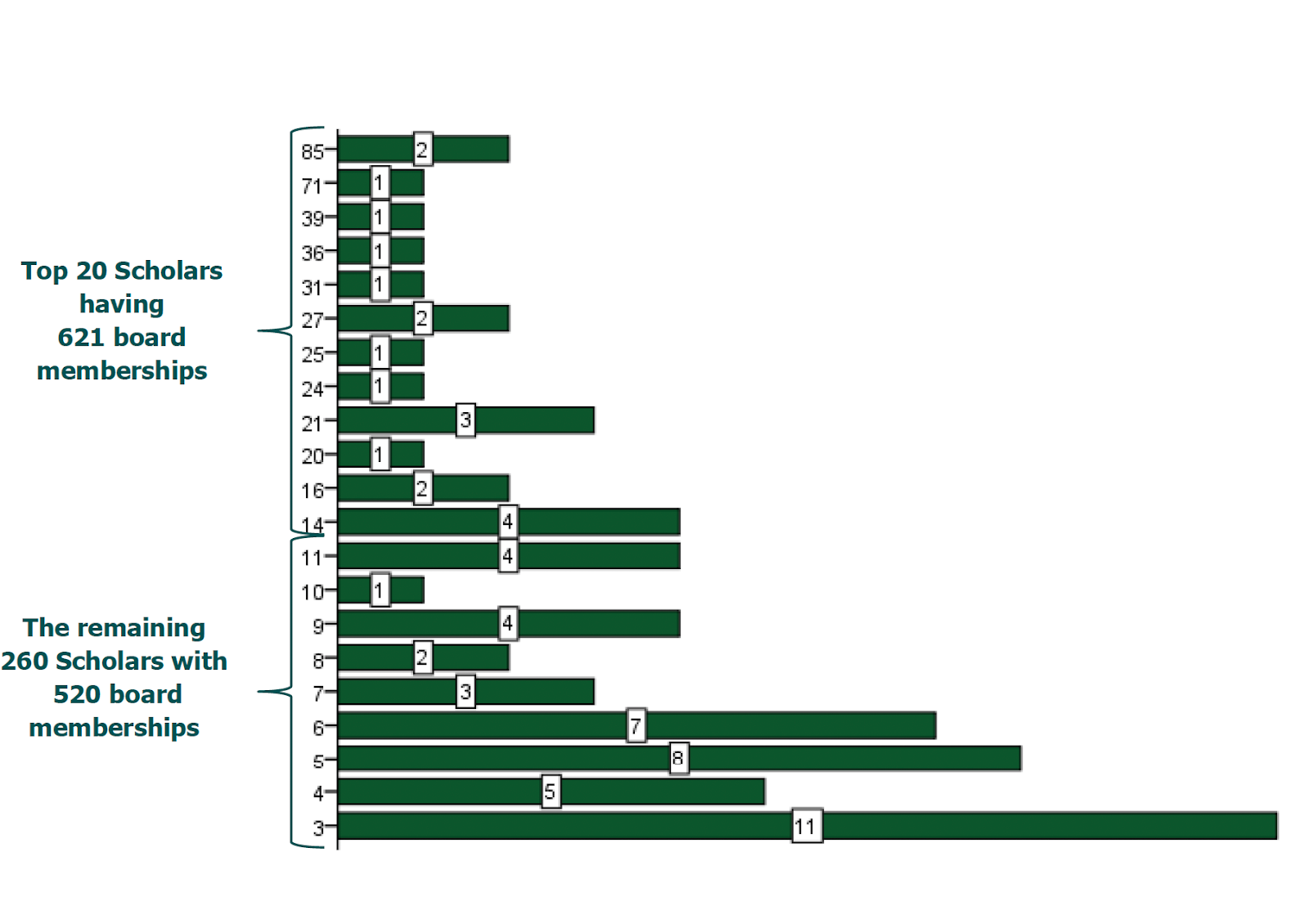 More than a decade later, a global empirical survey of Shariah supervisory boards in 238 full-fledged Islamic commercial banks shows that the pattern of concentration has not gone away. In that 2019 dataset, 428 Shariah scholars occupied 522 board seats, with the top 10 scholars alone holding 74 positions (an average of 7.4 each) and the top 20 holding 106 positions.